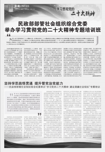 民政部部管社會(huì)組織綜合黨委舉辦學(xué)習(xí)貫徹黨的二十大精神專題培訓(xùn)班