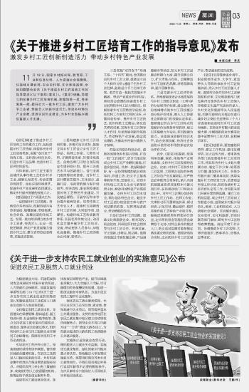 《關(guān)于推進(jìn)鄉(xiāng)村工匠培育工作的指導(dǎo)意見(jiàn)》發(fā)布
