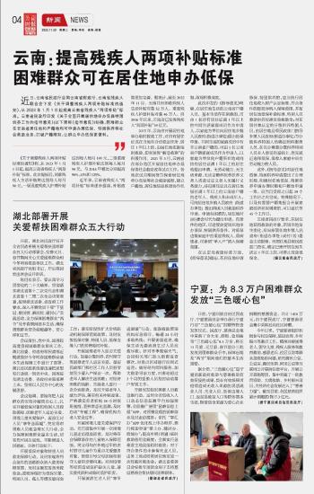 云南:提高殘疾人兩項(xiàng)補(bǔ)貼標(biāo)準(zhǔn) 困難群眾可在居住地申辦低保