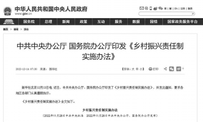 ■ 本報記者 皮磊 近日,中共中央辦公廳、國務(wù)院辦公廳印發(fā)了《鄉(xiāng)村振興責(zé)任制實施辦法》(以下簡稱《辦法》),并發(fā)出通知,要求各地區(qū)各部門認真遵照執(zhí)行。 《辦法》指出,實行鄉(xiāng)村振興責(zé)任制,堅持以習(xí)近平新時代中國特色社會主義思想為指導(dǎo),增強“四個意識”、堅定“四個自信”、做到“兩個維護”,實行中央統(tǒng)籌、省負總責(zé)、市縣鄉(xiāng)抓落實的鄉(xiāng)村振興工作機制,構(gòu)建職責(zé)清晰、各負其責(zé)、合力推進的鄉(xiāng)村振興責(zé)任體系,舉全黨全社會之力全面推進鄉(xiāng)村振興,加快農(nóng)業(yè)農(nóng)村現(xiàn)代化。 《辦法》強調(diào),堅持黨對農(nóng)村工作的全面領(lǐng)導(dǎo),健全黨委統(tǒng)一領(lǐng)導(dǎo)、政府負責(zé)、黨委農(nóng)村工作部門統(tǒng)籌協(xié)調(diào)的農(nóng)村工作領(lǐng)導(dǎo)體制,省市縣鄉(xiāng)村五級書記抓鄉(xiāng)村振興。 在黨中央領(lǐng)導(dǎo)下,中央農(nóng)村工作領(lǐng)導(dǎo)小組負責(zé)鞏固拓展脫貧攻堅成果、全面推進鄉(xiāng)村振興的牽頭抓總、統(tǒng)籌協(xié)調(diào),推動建立健全鄉(xiāng)村振興責(zé)任落實、組織推動、社會動員、要素保障、考核評價、工作報告、監(jiān)督檢查等機制并抓好組織實施。 《辦法》明確了中央和國家機關(guān)有關(guān)部門鄉(xiāng)村振興責(zé)任。其中提到,鞏固拓展脫貧攻堅成果,完善并組織實施配套政策,健全并推進實施防止返貧動態(tài)監(jiān)測和幫扶機制,重點幫扶支持國家鄉(xiāng)村振興重點幫扶縣、易地搬遷集中安置點等重點區(qū)域,持續(xù)做好中央單位定點幫扶工作,讓脫貧攻堅成果更加扎實、更可持續(xù)。堅持農(nóng)業(yè)農(nóng)村優(yōu)先發(fā)展,在干部配備、要素配置、資金投入、公共服務(wù)等方面對鄉(xiāng)村振興予以優(yōu)先保障,健全城鄉(xiāng)融合發(fā)展體制機制和政策體系,暢通城鄉(xiāng)要素流動。 《辦法》也明確了地方黨委和政府鄉(xiāng)村振興責(zé)任。其中提到,把鞏固拓展脫貧攻堅成果擺在突出位置,確保兜底保障水平穩(wěn)步提高,確?!叭U稀焙惋嬎踩U纤匠掷m(xù)鞏固提升,不斷縮小收入差距、發(fā)展差距,增強脫貧地區(qū)和脫貧群眾內(nèi)生發(fā)展動力,切實運行好防止返貧動態(tài)監(jiān)測和幫扶機制,守住不發(fā)生規(guī)模性返貧底線,努力讓脫貧群眾生活更上一層樓。鼓勵和引導(dǎo)各類人才投身鄉(xiāng)村振興,選派優(yōu)秀干部到鄉(xiāng)村振興一線崗位,大力培養(yǎng)本土人才,引導(dǎo)返鄉(xiāng)回鄉(xiāng)下鄉(xiāng)就業(yè)創(chuàng)業(yè)人員參與鄉(xiāng)村振興,支持專業(yè)人才通過多種方式服務(wù)鄉(xiāng)村,推動鄉(xiāng)村振興各領(lǐng)域人才規(guī)模不斷壯大、素質(zhì)穩(wěn)步提升、結(jié)構(gòu)持續(xù)優(yōu)化。 《辦法》鼓勵社會力量參與鄉(xiāng)村振興。其中明確指出,中央定點幫扶單位應(yīng)當(dāng)履行幫扶責(zé)任,聚焦鞏固拓展脫貧攻堅成果和全面推進鄉(xiāng)村振興,制定年度計劃,發(fā)揮自身優(yōu)勢創(chuàng)新幫扶舉措,持續(xù)選派掛職干部和駐村第一書記,加強工作指導(dǎo),督促政策落實,提高幫扶實效。 東西部協(xié)作雙方各級黨委和政府應(yīng)當(dāng)堅持雙向協(xié)作、互惠互利、多方共贏,統(tǒng)籌推進教育、文化、醫(yī)療衛(wèi)生、科技等領(lǐng)域?qū)趲头龉ぷ?,深化區(qū)縣、村企、學(xué)校、醫(yī)院等結(jié)對幫扶,加強產(chǎn)業(yè)合作、資源互補、勞務(wù)對接、人才交流等,把幫扶重點轉(zhuǎn)向鞏固拓展脫貧攻堅成果和全面推進鄉(xiāng)村振興。 《辦法》還提到,工會、共青團、婦聯(lián)、科協(xié)、殘聯(lián)等群團組織應(yīng)當(dāng)發(fā)揮優(yōu)勢和力量參與鄉(xiāng)村振興。企事業(yè)單位和社會組織應(yīng)當(dāng)積極履行社會責(zé)任,支持鄉(xiāng)村振興。深入實施“萬企興萬村”行動,探索建立健全企業(yè)支持鄉(xiāng)村振興機制。發(fā)揮第三次分配作用,鼓勵引導(dǎo)各類公益慈善資金支持鄉(xiāng)村振興。鼓勵公民個人主動參與鄉(xiāng)村振興。 《辦法》最后明確了考核監(jiān)督機制及獎懲機制。 |