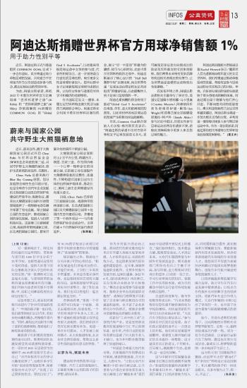 阿迪達(dá)斯捐贈(zèng)世界杯官方用球凈銷售額1%