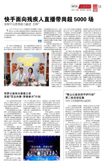 快手面向殘疾人直播帶崗超5000場(chǎng)