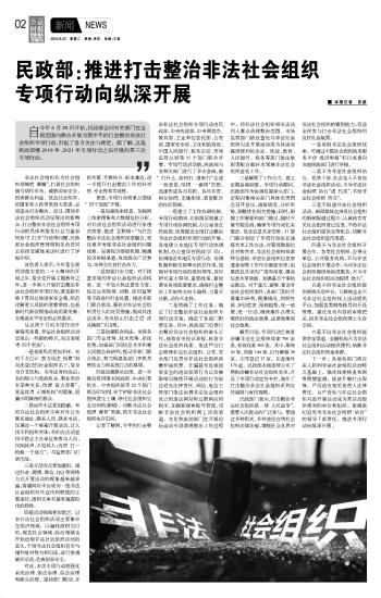 民政部:推進(jìn)打擊整治非法社會組織專項(xiàng)行動向縱深開展