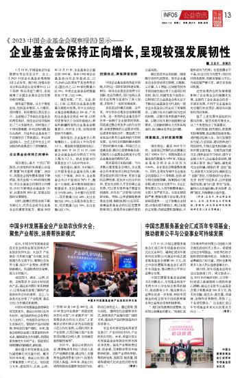 《2023中國(guó)企業(yè)基金會(huì)觀察報(bào)告》顯示—— 企業(yè)基金會(huì)保持正向增長(zhǎng),呈現(xiàn)較強(qiáng)發(fā)展韌性