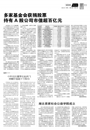 多家基金會獲捐股票 持有A股公司市值超百億元