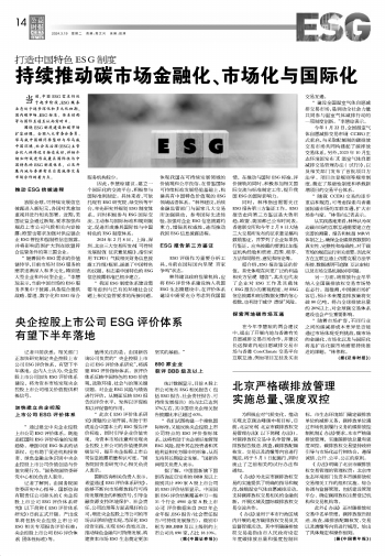 央企控股上市公司ESG評價體系有望下半年落地