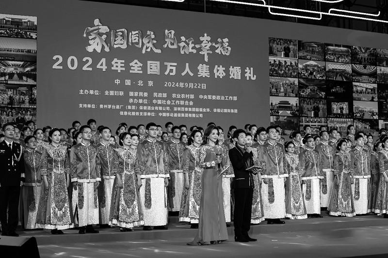 9月22日,由全國(guó)婦聯(lián)、國(guó)家民委、民政部、農(nóng)業(yè)農(nóng)村部、中央軍委政治工作部聯(lián)合主辦,中國(guó)社會(huì)工作聯(lián)合會(huì)承辦的“家國(guó)同慶 見證幸?!?024年全國(guó)萬(wàn)人集體婚禮,在北京主會(huì)場(chǎng)、各省(自治區(qū)、直轄市)和新疆生產(chǎn)建設(shè)兵團(tuán)49個(gè)分會(huì)場(chǎng)同步進(jìn)行。來(lái)自全國(guó)各省區(qū)市和港澳臺(tái)地區(qū)的5105對(duì)新人參與這場(chǎng)中式集體婚禮,在同一時(shí)刻許下幸福誓言,喜迎新中國(guó)75周年華誕。全國(guó)婦聯(lián)黨組書記、副主席、書記處第一書記黃曉薇為新人證婚。民政部黨組書記、部長(zhǎng)陸治原為新人主婚。 儀式上,通過(guò)視頻連線,主分會(huì)場(chǎng)的萬(wàn)名新人完成婚禮儀式,共同許下風(fēng)雨同行、相知相守、家風(fēng)潤(rùn)心、向上向善、修身立業(yè)、胸懷家國(guó)的幸福誓言。全國(guó)道德模范、全國(guó)文明家庭等先進(jìn)典型代表和金婚伉儷代表等為新人們送上美好祝福。新人代表發(fā)出了爭(zhēng)做中華家庭美德的傳承者、新型婚育文化的引領(lǐng)者、社會(huì)主義家庭文明新風(fēng)尚的踐行者倡議。 各會(huì)場(chǎng)精彩紛呈,廣東廣州設(shè)置婚俗文化展,把代表廣府婚俗歷史文化變遷的喜文化納入展陳,展示婚俗禮儀;福建福州邀請(qǐng)6對(duì)臺(tái)胞新人參加,成為深化兩岸情感融合的有力印證;重慶將婚禮向婚戀延展,現(xiàn)場(chǎng)邀請(qǐng)未婚青年觀禮;陜西西安新人們身著唐制婚服,穿過(guò)六國(guó)元首共植的友誼樹,在中國(guó)-中亞峰會(huì)的主會(huì)場(chǎng)許下相守誓言……各地紛紛將優(yōu)秀傳統(tǒng)文化、移風(fēng)易俗等家庭文明建設(shè)內(nèi)容融入集體婚禮環(huán)節(jié),以中式婚禮弘揚(yáng)婚事新辦簡(jiǎn)辦新風(fēng)貌。 新人們來(lái)自28個(gè)民族,遍及科技、教育、文化、醫(yī)療、農(nóng)業(yè)等各行各業(yè)。在各分會(huì)場(chǎng),婦聯(lián)組織聯(lián)合有關(guān)部門將傳統(tǒng)文化、移風(fēng)易俗等家庭文明建設(shè)內(nèi)容融入集體婚禮相關(guān)環(huán)節(jié),傳承民族婚俗禮儀文化,弘揚(yáng)婚事新辦的文明新風(fēng)。 民政部相關(guān)負(fù)責(zé)人表示,以“家國(guó)同慶 見證幸?!睘橹黝}舉辦集體婚禮,是對(duì)祖國(guó)最深情的告白,更是厚植家國(guó)情懷的生動(dòng)體現(xiàn)。這場(chǎng)萬(wàn)人集體婚禮將在倡導(dǎo)移風(fēng)易俗、婚事新辦簡(jiǎn)辦,反對(duì)高額彩禮、大操大辦,進(jìn)一步倡導(dǎo)新型婚育文化,培育社會(huì)主義家庭文明新風(fēng)尚等方面起到積極作用。 (據(jù)中國(guó)社會(huì)工作聯(lián)合會(huì)) |