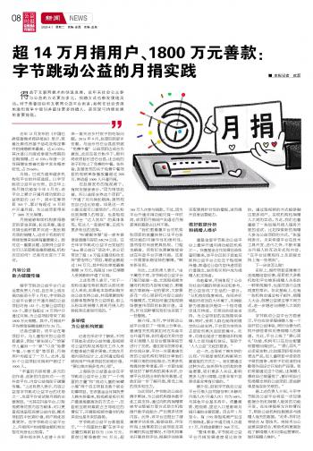超14萬月捐用戶、1800萬元善款:字節(jié)跳動(dòng)公益的月捐實(shí)踐