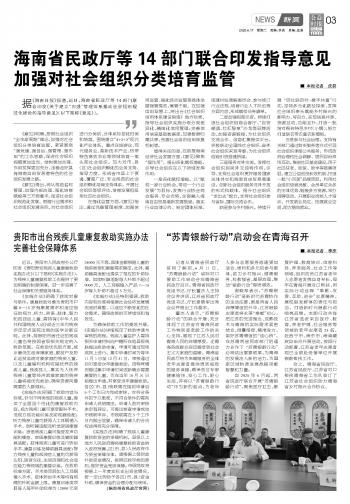 海南省民政廳等14部門聯(lián)合印發(fā)指導(dǎo)意見加強(qiáng)對(duì)社會(huì)組織分類培育監(jiān)管