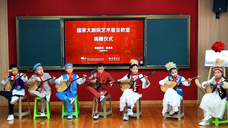 國家大劇院藝術(shù)普及教室,采用“線下空間改造+線上資源賦能”的立體幫扶模式,以“小空間”激活“大文化”,既是首都連接邊遠(yuǎn)地區(qū)的“美育橋梁”,也是國家大劇院在邊遠(yuǎn)地區(qū)的“美育陣地”。 ■ 本報記者 高文興 在祖國邊陲,新疆的西北端,坐落著這樣一個與哈薩克斯坦共和國接壤的小城——博爾塔拉蒙古自治州溫泉縣。這片僅有7萬多人口的靜謐之地,其三面被高聳入云的連綿雪山所包圍,像是被巨人藏入懷抱的一顆稀世之珍,驚艷動人,卻隱秘地不為外界察覺。 9月中旬的晚上,溫泉縣已倍感寒意,至21時,漫長的白日卻才舍得向這里做最后告別。然而,一片雷鳴般的掌聲和歡呼又陡然劃破這天山腳下的寧靜,一場國家級頂尖水準(zhǔn)的歌舞盛宴此時拉開帷幕——在新疆維吾爾自治區(qū)成立70周年之際,國家大劇院藝術(shù)發(fā)展基金會為溫泉縣帶來的藝術(shù)火種,正烘托著這顆邊陲明珠釋放其更加璀璨的光芒。 “藝術(shù)普及教室”落地溫泉 助力多民族文化永葆活力 溫泉縣城位于海拔1700米的博格達(dá)爾山的山腳下,博格達(dá)爾在蒙語中意為“神山的背后”。雖然地處遙遠(yuǎn),但千年來,在這座神山的注視下,漢族、蒙古族、哈薩克族、維吾爾族等多民族共同譜寫出了一曲曲世代傳唱的動人歌謠,當(dāng)?shù)氐拿晒抛宥陶{(diào)更從大山背后傳出,成為了國家級的“非遺”代表性項目。 9月17日,國家大劇院藝術(shù)發(fā)展基金會攜國家大劇院歌唱家遠(yuǎn)赴溫泉縣,與溫泉縣烏蘭牧騎展開交流,為草原輕騎兵捐贈樂器,并與他們聯(lián)手為當(dāng)?shù)匕傩辗瞰I(xiàn)了兩臺高水準(zhǔn)的演出,將最優(yōu)質(zhì)的文化資源送抵祖國的邊境線。 于是,便有了文章開頭的一幕——千余名當(dāng)?shù)匕傩赵谝归g涌進(jìn)溫泉縣文化中心劇場,他們的熱情激發(fā)出了演員們的高水準(zhǔn)表演,將晚會推向一個又一個高潮。 巴音巴特已經(jīng)是溫泉縣烏蘭牧騎第五任隊長,當(dāng)天,他全程參與了和大劇院歌唱家的交流以及同臺演出,他在演出后接受《公益時報》記者采訪時表示,在過去,烏蘭牧騎的創(chuàng)作和演出條件艱苦,經(jīng)?!耙蕴鞛槟徊?,以地為舞臺”,這次國家大劇院帶來的樂器有鋼琴、二胡、三弦等,“豐富了我們的樂器品種,讓演員的創(chuàng)作、表演和舞蹈編曲更上一個臺階。國家大劇院藝術(shù)家與基層藝術(shù)團(tuán)隊的深入交流,也讓我們受益匪淺,他們千里迢迢的到來讓我們深切感受到了來自祖國的溫暖。” 溫泉縣烏蘭牧騎生生不息的傳承基因,必然與當(dāng)?shù)孛耖g世代熏陶和培養(yǎng)密不可分,而小學(xué)基礎(chǔ)教育則是將藝術(shù)種子進(jìn)行集中播撒的關(guān)鍵階段。鑒于此,國家大劇院團(tuán)隊本次新疆溫泉之行的“重頭戲”,則是為溫泉縣城鎮(zhèn)小學(xué)精心打造一間“藝術(shù)普及教室”。 據(jù)了解,溫泉縣城鎮(zhèn)小學(xué)是當(dāng)?shù)匾蛔兄凭脷v史和美育教育傳統(tǒng)的學(xué)校,目前在校學(xué)生1052名,其中90%為少數(shù)民族。校長王麗娜表示,學(xué)校配備了6間音樂教室和4名音樂教師,基本滿足教學(xué)需求,但面對孩子們更高的藝術(shù)渴求,在樂器等基礎(chǔ)設(shè)備上還難以滿足。 而新落成的“藝術(shù)普及教室”中,教學(xué)一體機(jī)、音響、鋼琴、合唱臺等先進(jìn)硬件設(shè)施一應(yīng)俱全,師生們還可以通過線上課堂來獲取更多的教材和音視頻。9月18日上午,在“藝術(shù)普及教室”捐贈儀式過后,城鎮(zhèn)小學(xué)的學(xué)生們表演了蒙古舞蹈《吉祥的筷子》、蒙古短調(diào)《察哈爾八旗》、維吾爾族舞蹈《快樂的童年》、冬不拉合奏《我的伙伴》、鋼琴演奏《噴泉》等精彩節(jié)目,展現(xiàn)了多民族文化的交融與活力。 此次隨隊前來的國家大劇院藝術(shù)家金鄭建、胡越,在驚嘆于小小年紀(jì)的孩子們有如此藝術(shù)天賦之余,分別為學(xué)校的社團(tuán)學(xué)生指導(dǎo)演唱《祖國在我心窩里》《盧溝謠》,并為他們上了一場生動的“藝術(shù)第一課”。 看到孩子們在藝術(shù)家的啟發(fā)下被激發(fā)出的求知欲和表現(xiàn)力,校長王麗娜感慨地說道:“其實不是我們的孩子不行,而是我們原來缺少這樣高水平的師資。通過初期課程和藝術(shù)家的指導(dǎo),我們的孩子進(jìn)步很快,對發(fā)聲技巧、節(jié)奏把控和個人展示都有很大的提升。我們非常感謝,希望有更多這樣高水平的專家來到我們這個邊陲小城,為更多渴望通往藝術(shù)殿堂的孩子提供指導(dǎo)。” 國家大劇院創(chuàng)公益新舉 立體扶持鄉(xiāng)村美育陣地 而此次掛牌落成的“藝術(shù)普及教室”已是國家大劇院藝術(shù)發(fā)展基金會在全國打造的第五間教室。 據(jù)了解,國家大劇院藝術(shù)發(fā)展基金會成立于2022年年底,基金會以“資助文化藝術(shù)公益項目”為主,圍繞國家大劇院“人民性、藝術(shù)性、國際性”三項宗旨,構(gòu)建了全民美育、藝術(shù)資助和藝術(shù)交流三大項目體系。 “藝術(shù)普及教室”是2024年基金會創(chuàng)新開展的公益項目之一。當(dāng)年11月,基金會首站深入大興安嶺腹地的內(nèi)蒙古鄂倫春自治旗,為這一鄂倫春族的主要聚居地打造了兩間“藝術(shù)普及教室”,也為當(dāng)?shù)氐臑跆m