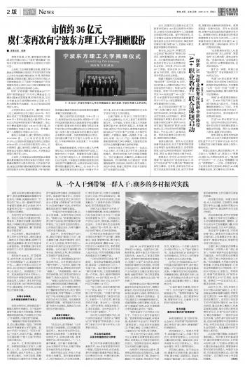市值約36億元 虞仁榮再次向寧波東方理工大學捐贈股份