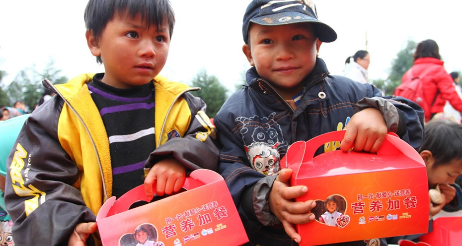 自2008年起,“捐一元?獻(xiàn)愛心?送營養(yǎng)”項目在全國啟動。每年項目通過2周左右的時間,利用通過百勝旗下遍及全國的肯德基、必勝客、必勝宅急送和東方既白餐廳向社會勸募,號召消費者捐一元錢,給貧困山區(qū)的孩子提供營養(yǎng)加餐![詳細(xì)]