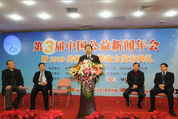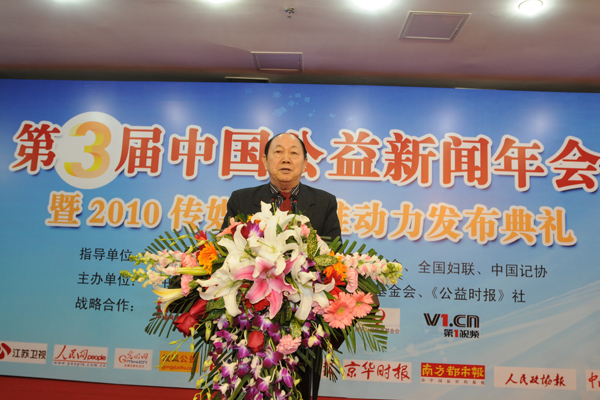 2月25日,第三屆中國(guó)公益新聞年會(huì)暨2010傳媒公益推動(dòng)力發(fā)布典禮在京召開(kāi)。全國(guó)人大原副委員長(zhǎng)、中國(guó)關(guān)心下一代工作委員會(huì)主任顧秀蓮,民政部原副部長(zhǎng)、中國(guó)社會(huì)工作協(xié)會(huì)會(huì)長(zhǎng)徐瑞新,中華全國(guó)新聞工作者協(xié)會(huì)書記處書記顧勇華等領(lǐng)導(dǎo)出席年會(huì)。