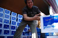 | 4月4日凌晨1點(diǎn),貴州黔西南州和興義市的有關(guān)同志還在緊張的工作著,與此同時(shí),滿載著愛心、友誼、祝福與好運(yùn)的四輛大卡車正駛?cè)肱d義市,這四輛卡車裝載了10000箱由西藏自治區(qū)政府捐助的5100冰川礦泉水,經(jīng)過了十幾個(gè)小時(shí)的長(zhǎng)途山路跋涉,終于到達(dá)了目的地——干旱最嚴(yán)重的黔西南州興義市。 |