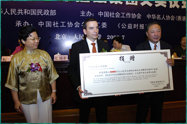中國(guó)社會(huì)工作協(xié)會(huì)會(huì)長(zhǎng)徐瑞新接受俄羅斯耶弗拉茲集團(tuán)捐贈(zèng)