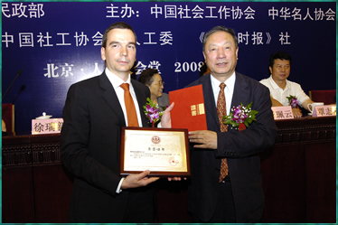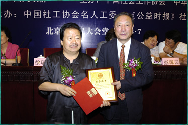 中國(guó)社會(huì)工作協(xié)會(huì)會(huì)長(zhǎng)徐瑞新頒發(fā)的捐贈(zèng)贈(zèng)書(shū) |